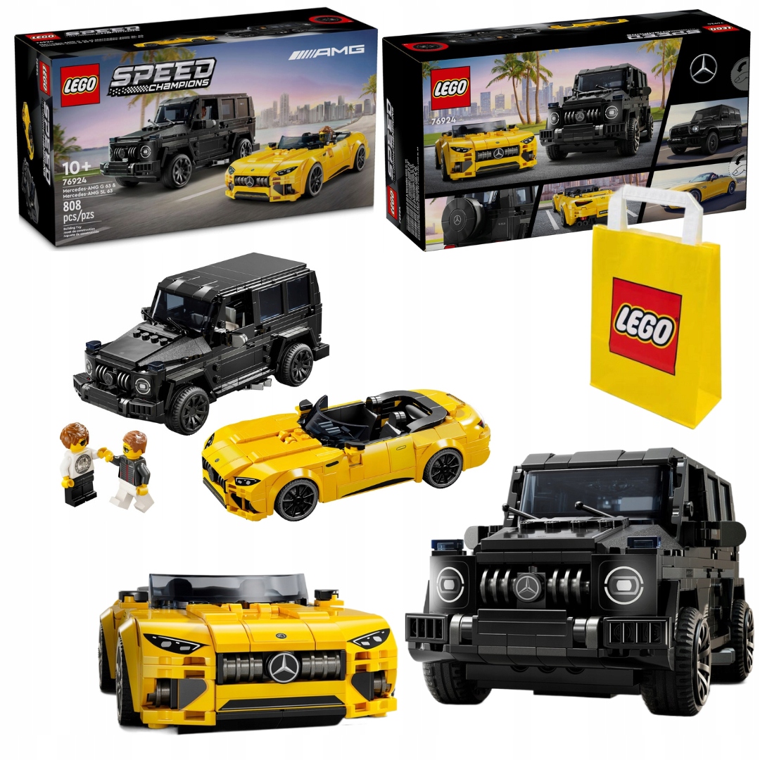 ⭐LEGO Speed 2x Samochód 76924 Mercedes-AMG G 63 i Mercedes-AMG SL 63 Auto⭐ ✅Seria: Speed Champions ✅Wiek dziecka:+10 lat ✅Ilość elementów: 808 ✅Torba LEGO gratis! ⭐Modele czarnego Mercedesa-AMG G 63 klasy G i żółtego kabrioletu Mercedes-AMG SL 63 zawierają autentyczne detale nawiązujące do pierwowzorów, w tym przednie grille, maski i elementy wnętrza. ⭐Do każdego zabawkowego…